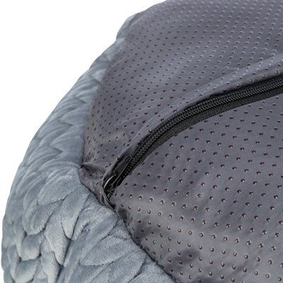 De afneembare hoes kan gewassen worden in de wasmachine op 40 graden, de vulling kan met de hand gewassen worden. De antislip onderkant en het vast geïntegreerde kussen zorgen ervoor dat de mand stevig blijft liggen.
