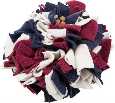 Trixie Dog Activity Snuffelbal 15 cm De Trixie Dog Activity Snuffelbal 15 cm is een speelbal, ook geschikt als snuffelmat voor de hond, die verveling voorkomt en schrokken tijdens de maaltijd voorkomt. Je bent vast al bekend met snuffelmatten, maar voor nog meer uitdaging is er nu ook de Trixie Snuffelbal! Deze leuke bal is gemaakt van polyester en bestaat uit franjes van diverse lengtes. Tussen deze franjes verstop je beloningssnoepjes voor de hond, of het dagelijkse voer. De hond moet vervolgens met de bal rollen en gooien en tussen de franjes snuffelen om zijn beloning te pakken te krijgen. Dit zorgt voor afleiding en voorkomt schrokken, wat bijdraagt aan een gezondere spijsvertering!