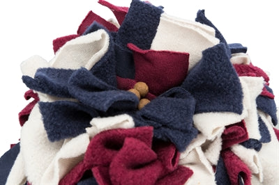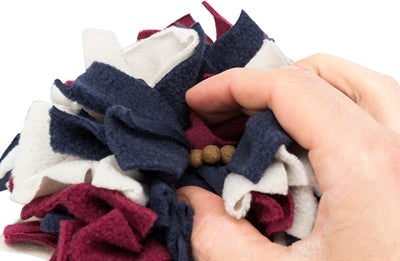 - Snuffelbal voor de hond - Net als een snuffelmat verschillende lengtes franjes om voer of snoepjes tussen te verstoppen - De hond moet tussen de franjes zijn beloning zien te vinden - Voorkomt verveling en zorgt voor beloonde activiteit - Helpt schrokken voorkomen, ondersteunt langzamer eten voor een betere spijsvertering