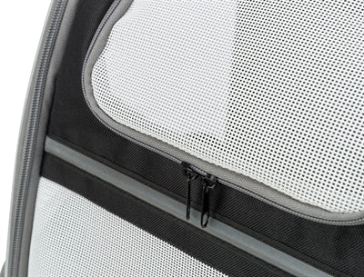Trixie Hondentas Rugtas Chloe Lichtgrijs/Zwart 39X27X43 cm De Trixie Hondentas Rugtas Chloe Lichtgrijs/Zwart 39X27X43 cm is een vormvaste rugtas om de hond mee te nemen op wandelingen of uitstapjes. De tas is zeer comfortabel op de rug te dragen: hij is voorzien van gevoerde, traploos verstelbare schouderriemen en een verstelbare taille- en borstriem. De tas is vormvast zodat jouw dier genoeg ruimte heeft en voorzien van gaas-inzetstukjes voor een goede ventilatie en zicht op de omgeving. De geïntegreerde korthouder voorkomt dat het dier uit de tas springt en de gevoerde bodemplaat met schapenvacht look zorgt voor meer comfort.