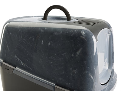 De kattenbak is uitgerust met handgreep, kunststof deur en verwisselbaar koolfilter om nare luchtjes rondom de kattenbak te voorkomen.