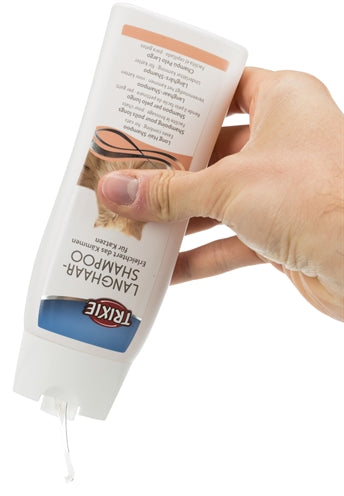 De Trixie Shampoo Langharige Kat 250 ml is een speciale kattenshampoo voor kattenrassen met een lange vacht. Deze heerlijk geurende shampoo is speciaal samengesteld om vachtproblemen die veel voorkomen bij katten met lange vacht. Zo gaat de shampoo vervilting tegen en voorkomt deze klitten, waardoor het doorkammen gemakkelijker wordt. Ideaal voor jouw Pers, ragdoll, boskat of andere kat met lang haar!