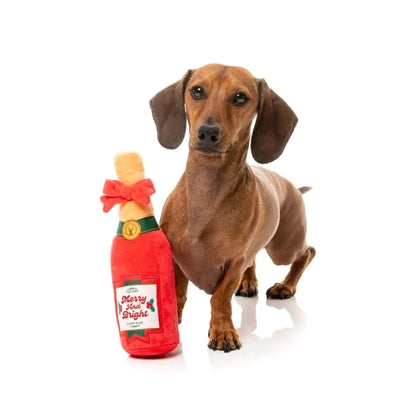 De Fuzzyard Merry & Bright Chomp-Agne is een feestelijk hondenspeeltje in de vorm van een pluche champagnefles, compleet met rood lint en kerstlabel. Deze stijlvolle ‘bubbel-knuffel’ zorgt gegarandeerd voor een sprankelend speelmoment onder de boom. Perfect om mee te spelen én om mee te knuffelen!