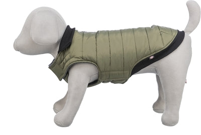 Trixie Hondenjas Arlay Donkergroen XS 30 cm De Trixie Hondenjas Arlay Donkergroen in maat XS 30 cm is een waterafstotende tussenjas voor de hond, te gebruiken met tuig en in een stoere stijl. Jouw hond komt stijlvol voor de dag met deze praktische hondenjas van Trixie! De Arlay hondenjas is gemaakt van polyester en heeft een moderne uitstraling. De heeft een voering van fleece, is licht gewatteerd en waterafstotend. Door de verstelbare, elastische buikflap en klittenbandsluiting in het borstgedeelte is deze jas gemakkelijk aan en uit te trekken. Deze jas kan gecombineerd worden met een tuig door de rits aan de bovenkant en is geschikt als tussenjas tijdens de herfst en het begin van de lente.