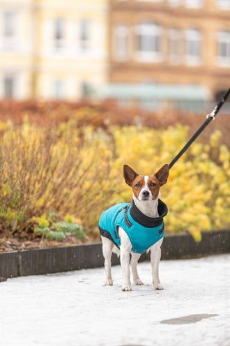 Trixie Hondenjas Pontis Met Tuig Aqua 40 cm De Trixie Hondenjas Pontis Met Tuig Aqua 40 cmis een handige jas met kraag voor de hond die waterafstotend is, met een geïntegreerd tuig. Jouw hond blijft mooi droog en warm tijdens regenachtige dagen! Met deze handige waterafstotende jas van Trixie weten jullie elk weer te trotseren. De Pontis jas is gemaakt van polyester en is gevoerd en gewatteerd met fleece. De jas heeft een geïntegreerd tuig, wat het aanlijnen met een jasje aan een stuk eenvoudiger maakt. Daarnaast heeft de jas een kraag en is het voorzien van een rits over de gehele rug. Door de beenlussen, die verstelbaar zijn, ben je verzekerd van een goede pasvorm en blijft de jas mooi op zijn plek. Door de reflecterende elementen valt jouw hond bovendien lekker op! De jas is te wassen op 30 graden Celsius.