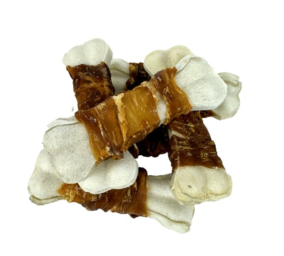 - Smakelijk bot voor de hond - Basis van runderhuid - Omwikkeld met gedroogd eendenvlees - Gaat verveling tegen, langdurige traktatie - Helpt bij het schoonhouden van het gebit