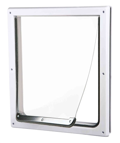 Het Trixie 2-Weg Hondenluik Wit M-XL 39 x 45 cm is een kunststof huisdierluik voor honden, met flexibele, geluidsarme klep, met vergrendeling. Ideaal om jouw honden de mogelijkheid te geven naar eigen behoeven naar binnen en naar buiten te gaan! Dit luik is voorzien van een flexibele, transparante klep die geluidsarm sluit. Door het uitneembare, metalen paneel is vergrendeling mogelijk en bescherm je jouw woning tegen ongewenste dieren en regen en wind. Inclusief tunnelelement, met een inbouwdiepte van 19 - 32 mm.