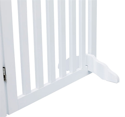 Het Trixie Hondenhek Met Deur Wit 60-160 x 81 cm is een vierdelig hek uit gelakt MDF, op verschillende manieren op te stellen, met voetjes.