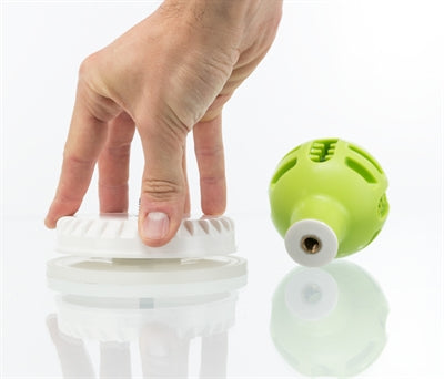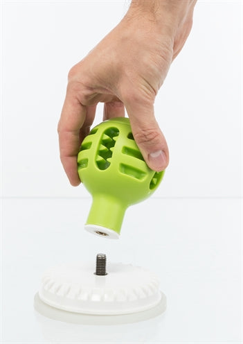 - Snack en likspeeltje voor de hond in de vorm van een bal op een standaard - Gemaakt van TPR/kunststof, met zuignap om op gladde oppervlakken te bevestigen - Met ruimte voor grotere beloningssnoepjes en ribbels aan de zijkant voor paté of leverworst - Biedt de hond afleiding, kalmeert en geeft rust